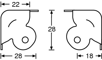 Malý roh pro case, 0.8 mm pochromovaná ocel, upevňovací otvory 4.1 mm.