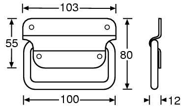 AH3440 – Madlo pro upevnění k povrchu, pozink. ocel, zarážka 90°, díry 5mm
