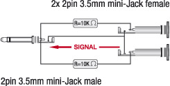 Redukce Mini Jack mono – 2x Mini Jack mono samice.