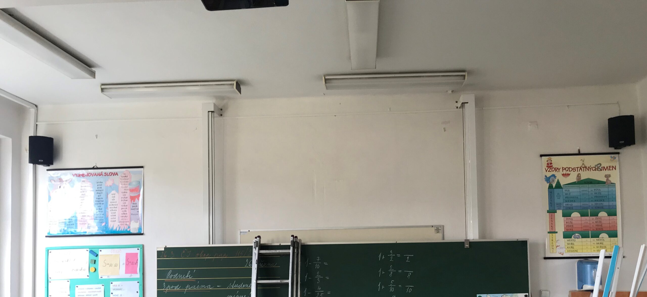 Úkol zněl jasně… Za co nejnižší cenu ozvučit 10 školních tříd. Do naší instalace byly třídy standardně ozvučeny párem malých reproduktorů určených pro PC, takže pokrytí hudebním signálem bylo naprosto nedostačujicí.