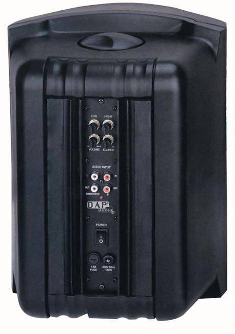 D3511 – 1 aktivní + 1 pasivní, plastové 2-pásmové reproboxy, černé. V aktivním boxu je vestavěný zesilovač pro oba reproboxy
